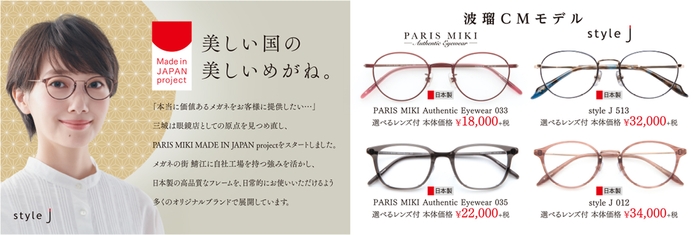 日本および地域への利益の還元を掲げ、商品のメガネフレームは「MADE IN JAPAN」にこだわり、エシカル消費を提唱いたします。近年のアジア産商品に押されながらも、高い技術力と品質を維持し続けている「日本のメガネ」を応援すべく、メガネの一大産地福井県鯖江市の企業・工場と連携し、オリジナル商品「style J」などを開発しています。店内の商品も日本製にこだわり、その高い品質の発信地となるべく、豊富に取り揃えております。