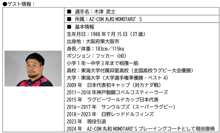 元ラグビー日本代表 木津武士選手と一緒にラグビー観戦しよう!
