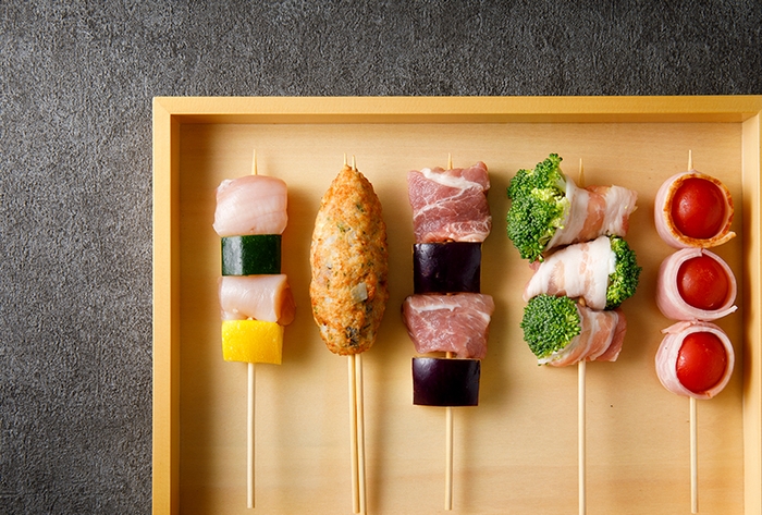 贅沢な備長炭の炭火焼きで、 安全安心な野菜と肉を串で楽しむ