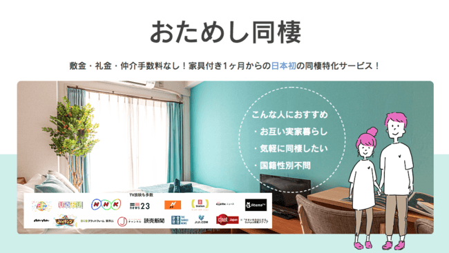 【大宮でおためし同棲 コロナ破局を防ぐ】保証人不要/初期費用なしで同棲がお試しできる日本初の同棲特化サービス「おためし同棲」でさいたま市・大宮エリア開始【マンスリーマンション】