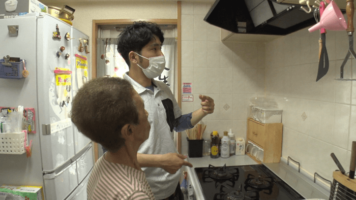 唐沢さんが訪れたのは、1年ほど前に夫を亡くして以来、一人暮らしのサポートとして家事代行を頼むようになった80代の常連さん。今回依頼したのは浴室の換気扇の掃除。なんでも気兼ねなく話せる唐沢さんの人柄に惚れ込み、大きな信頼を寄せています。