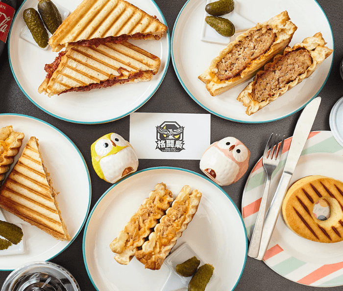 『フクロウカフェ&バー 格闘梟』はフードメニューにも力を入れており、特に素材にこだわった「ホットサンド」は味も絶品と人気です。