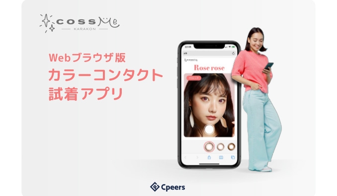 株式会社Cpeersが提供する、Webブラウザ版カラーコンタクト試着アプリ「cossMe」は、スマートフォンのカメラを通してカラーコンタクトレンズを試着した際の変化を体験でき、購入前にサービスをご利用いただくことで消費者のカラコン選びの失敗を防止することが可能になります。管理画面より撮影数やシェア数などを解析することや、LP作成等機能面でも充実しており、メーカー様をサポートする、おすすめのツールです。