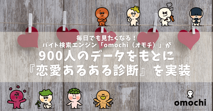 毎日でも見たくなる! バイト検索エンジン「omochi(オモチ)」が 全国の大学生900人のアンケートデータをもとに、『恋愛あるある診断』を実装