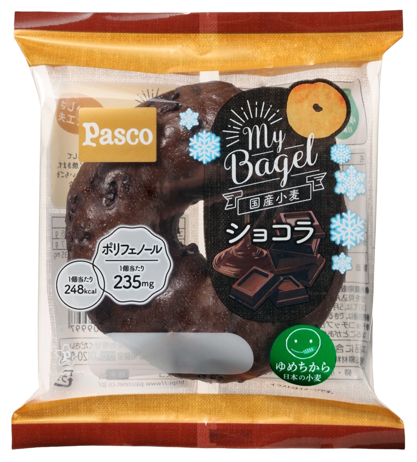 敷島製パン株式会社(Pasco)は、国産小麦「ゆめちから」の小麦粉を使用した本格ベーグル「My Bagel」シリーズの期間限定商品「My Bagel ショコラ」を、2018年12月1日から2019年2月28日まで、関東、中部、関西、中国、四国地区で発売します。