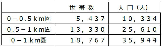 ・店舗から1㎞圏内には単身世帯が50.1%と多いですが、2~3人世帯比率も東京都平均より高く、少人数世帯が約9割を占めます。