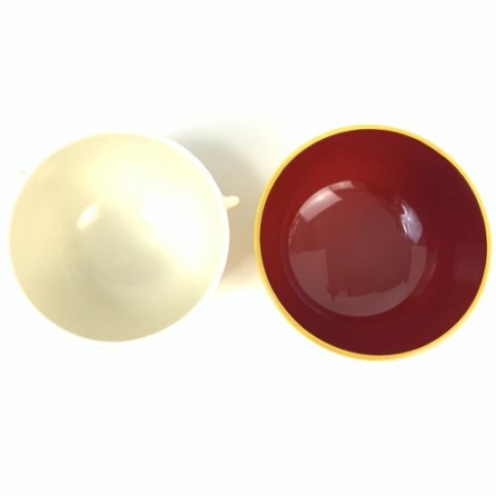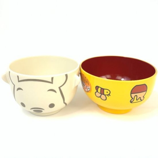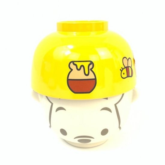 お子さんにも人気の、くまのプーさんの汁椀&茶碗セットです。ご覧のように、汁椀を茶碗の上にかぶせて収納できるので、省スペースに収納することができます。