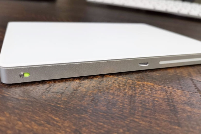 横から見るとほんのりと傾斜がついているMagic Trackpad 2。