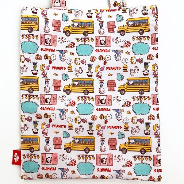 スヌーピーフレンズがたくさん描かれている、楽しいデザインのトートーバッグです。スクールバスもデザインされていて、ポップなカラーもかわいいですよね。サイズは36.5×29cmなので、容量も十分ですね。フラットなので、使いやすいですよ。