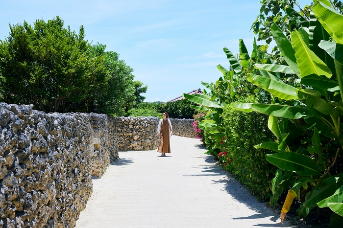 竹富島の東に位置する琉球赤瓦の集落「星のや竹富島」。約2万坪の敷地には、島内の家々と同じように「竹富島景観形成マニュアル」に従い、伝統を尊重して建てた戸建の客室、白砂の路地、プール、見晴台などがあり、小さな集落が構成されています。