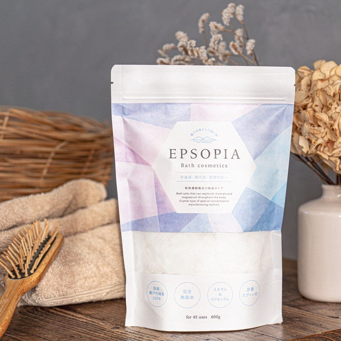 『エプソピア』は、瀬戸内海産100%の完全無添加のバスソルト(塩化マグネシウム)です。ミネラル豊富なバスタイムは、夏のボディケアに欠かせません。