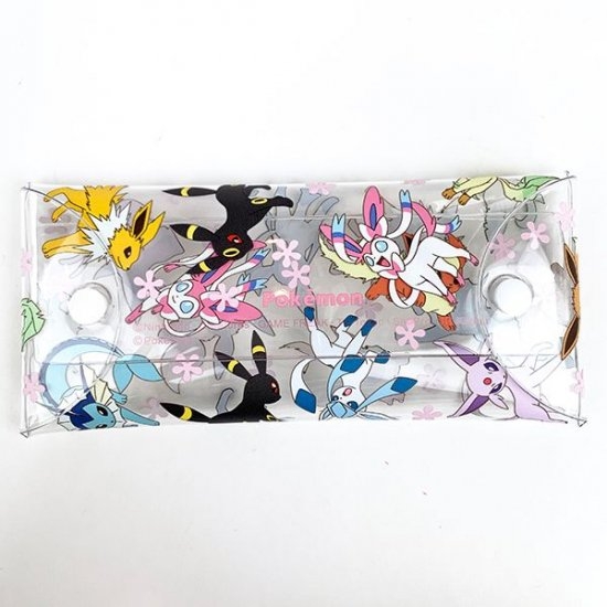 PVCの透明素材が人気のクリアマルチケースに、かわいい進化前のイーブイをはじめ進化系も大集合♪シャワーズやエーフィたちの姿が見えますね~
