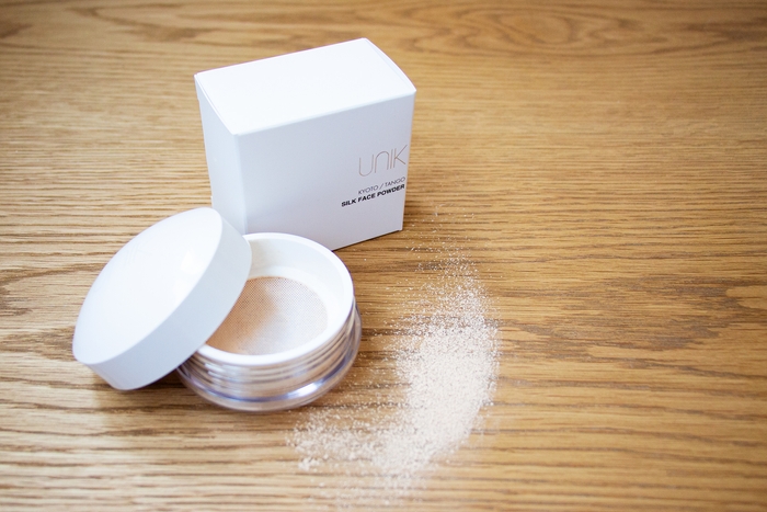 シルクの主成分「フィブロイン」には保湿アミノ酸が多く含まれている。そのためUNIKシルクフェイスパウダーはしっとり、さらさらとした付け心地となる。またフィブロインの吸放湿性の良さから、塗布後長時間経っても化粧が崩れにくく長持ちする。