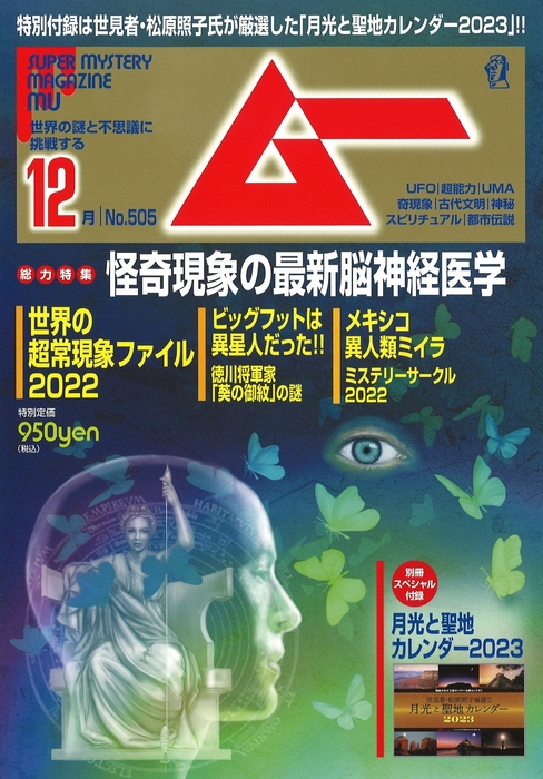 2色刷り特集 世界の超常現象ファイル2022/メキシコで発見‼ 異人類「シトラルテミニ」の謎/比婆山で獣人ヒバゴンの絵巻物が発見された‼/実用スペシャル エスパー・小林の年末ジャンボ必勝法/特別付録 世見者・松原照子が厳選‼ 月光と聖地カレンダー2023/驚異の心霊手術師 ホセ・アリゴー/獣人ビッグフットは異星人だった‼/ミステリーサークル2022/ほか