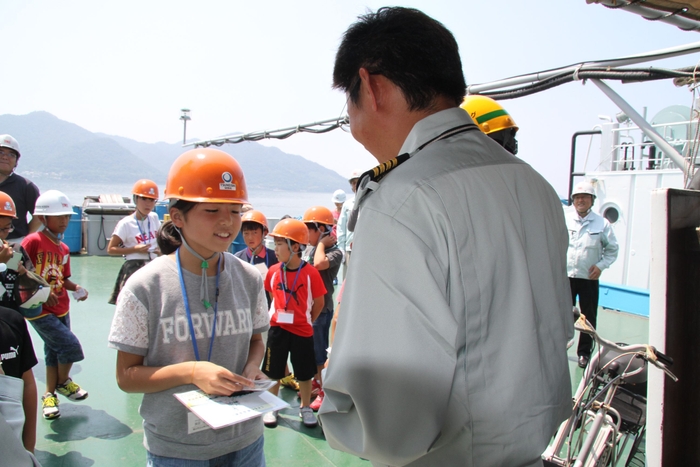 参加した子どもたちは、「船が大きくて上から眺める海がきれいだった。船長さんに会えてよかったです。次は1日船長になってみたいです」、「船にはたくさんの部屋があってびっくりした」などの感想を話し、喜んでいました。
