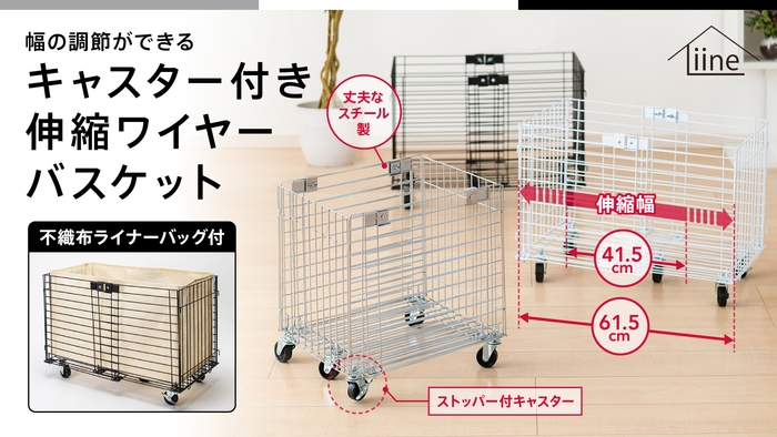 Liine(リーネ/ (株)中塚小児車工業所)は、応援購入サービス Makuake にて、幅の調節ができて使い勝手の良い「キャスター付き伸縮ワイヤーバスケット」の先行予約販売を2022年6月15日(水)より開始。公開後3日目で目標金額を達成しました。