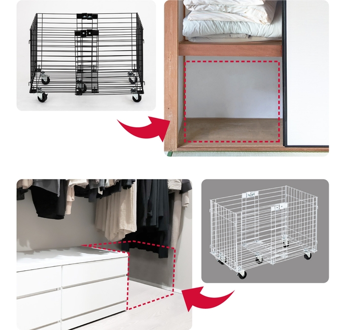 キャスター付きで幅が伸縮できるので、押し入れやクローゼットのちょっとした隙間スペースにも"収納 in 収納"で有効活用することができます。