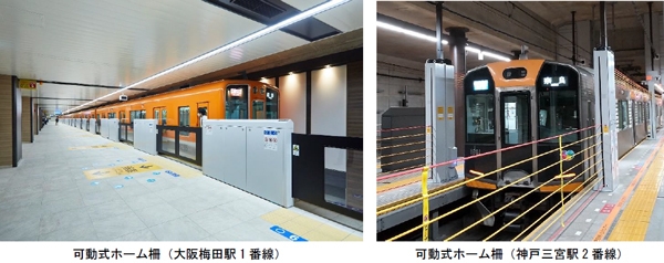 現在、大阪梅田駅(1番線)と神戸三宮駅で可動式ホーム柵を供用していますが、更なるホームの安全性向上を図るため、2042年度頃を目途とした全駅へのホーム柵(可動式又は固定式)の整備を目指して、計画を進めてまいります。