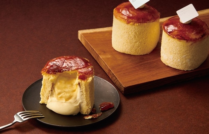 琥珀色に輝くブリュレを割ると、なめらかで濃厚なカスタードクリームと生クリームを混ぜ込んだ生カスタードクリームの2種類がとろりととろけ出します。周りのふわふわしっとりスポンジ生地と一体となり、絶妙な美味しさを奏でます。1~2名様でもお召し上がりいただけるようなボリュームいっぱいの一品です。