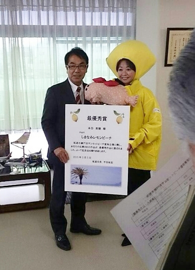 愛称は2014年7月19日から募集し、応募総数468点の中から、未来志向・愛着や親しみやすさ・印象に残る・覚えやすいなどの面から尾道市瀬戸田サンセットビーチ愛称選考委員会が最優秀賞に選び、2015年3月5日(木)に尾道市役所で発表と表彰式が行われました。