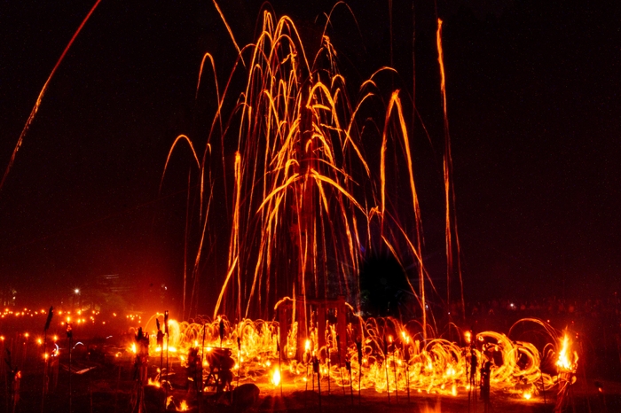 夜空に松明が弧を描く、壮観かつ幻想的な火の神事 花背松上げ・広河原松上げ 観賞バスツアーを販売開始