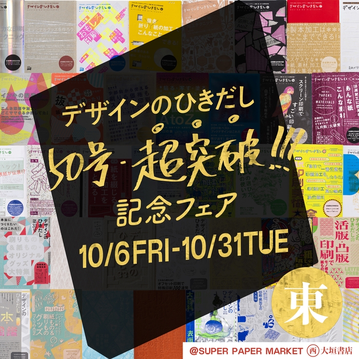 「デザインのひきだし50号・超突破記念フェア」を東西2拠点で開催中!! 東京・青山ブックセンター本店では実物綴込みサンプル全160点が見られるサンプル展を、全国の書店では特典冊子付きフェアも!