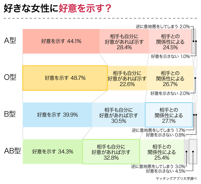 「好きな女性に好意を示すか」血液型ごとのまとめ