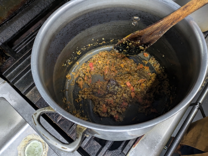 看板メニューのキーマカレーは、牛・豚・ラムの3種の肉を使用し、店舗で粗くカットされたゴツゴツとしたひき肉が特徴です。一口ごとに異なる食感を楽しめます。