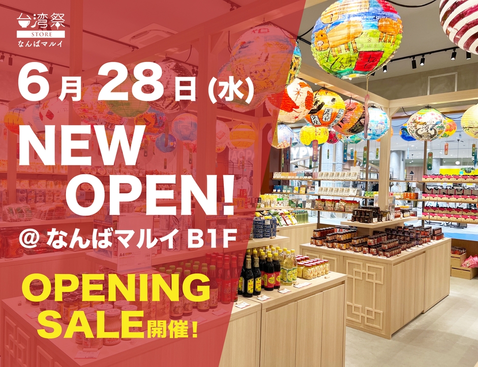 あの人気のグルメイベント「台湾祭」の台湾食品物販専門店「台湾祭STORE」が、ららぽーと堺に続き2号店として2023年6月28日(水)、なんばマルイ(B1F)にオープンいたします。