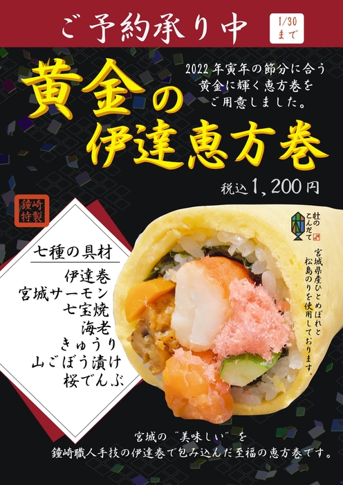 黄金に輝く恵方巻で無病息災! 新発売「黄金の伊達恵方巻」 いよいよ予約販売スタート!