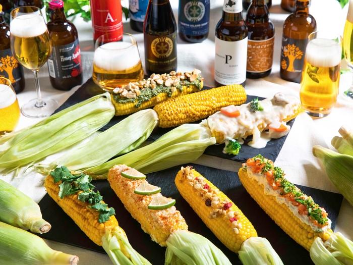 全7種類のオリジナルフレーバーに仕上げたとうきびと、北海道を代表する10種類のビールを堪能できるビアガーデンです。オリジナルフレーバーは、醤油バターやシチュー、北海道に馴染み深いサーモンを使用したものなどがあり、それぞれビールにぴったりの味わいです。