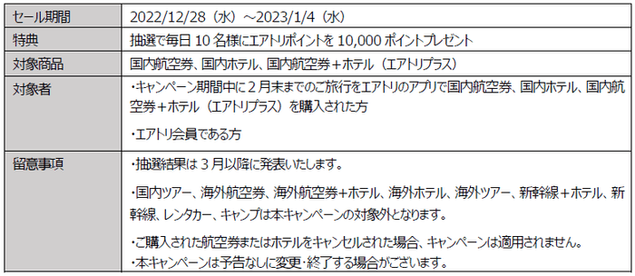 「2023エアトリ超新春セール」を開始!! ~第一弾として、国内旅行購入者限定で、毎日抽選で10名様に 10,000ポイントプレゼント!!~