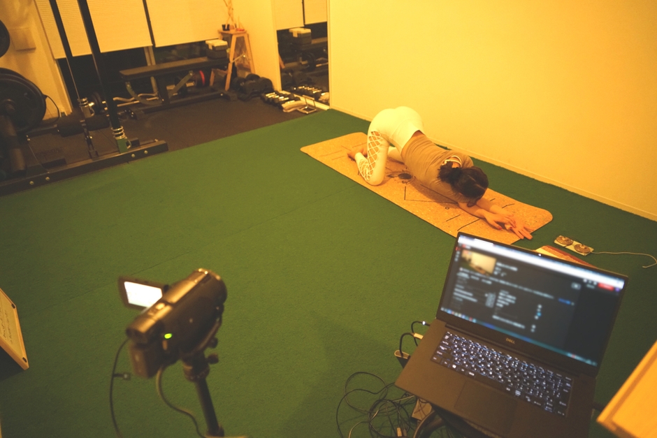 今回は、都内某所のパーソナルトレーニングジムをお借りして、オンラインヨガ教室を開催しました。