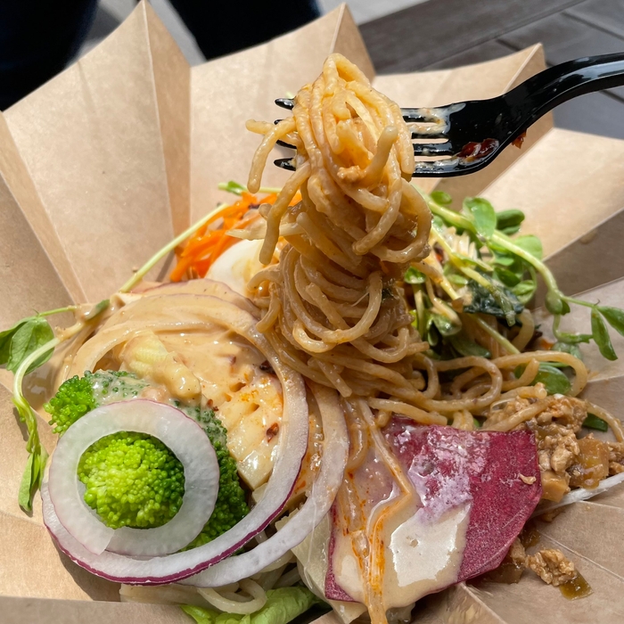コロナ渦で営業の職を失い、「やりたい事をやろう!」と決心した店主が、自身の経験も踏まえて、「誰かのダイエットに役に立てる事をやろう」と思い立ち上げたのがこのオリジナリティ溢れるサラダ専門店&罪なき混ぜそば専門店です。