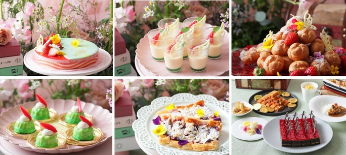 小説「ピーター・パンとウェンディ」から着想を得た本企画の舞台は “ストロベリーネバーランド”。ピーター・パンに恋するティンカー・ベルを、旬のいちごやピスタチオを使ったキュートでさわやかなスイーツの数々と空間で演出。ティンカー・ベルの魔法の粉や羽をあしらい、甘酸っぱい恋心をイメージし可愛らしく仕上げた“恋するティンカー・ベル~ラズベリーライムムース~”は、シェフパティシエおすすめの一品です。また、バニラビーンズが香るカスタードをたっぷりと入れたホテルメイドのシューをエディブルフラワーや蝶々のチョコレートを使い、メルヘンチックに仕立てた“お花畑のいちご&シュー”や、“いちごとピスタチオのタルト”など、全16種類のスイーツが楽しめます。フードは、じっくり煮込んだ“インディアンカレー”や、“ファルファッレのクリームパスタ~妖精たち~”など、ボリューム感のあるメニューをオーダー形式の食べ放題でご用意。会場内は、ファンタジックな世界が広がっており、フォトスポットも充実。物語の中にトリップしたようなひと時をお過ごしいただけます。