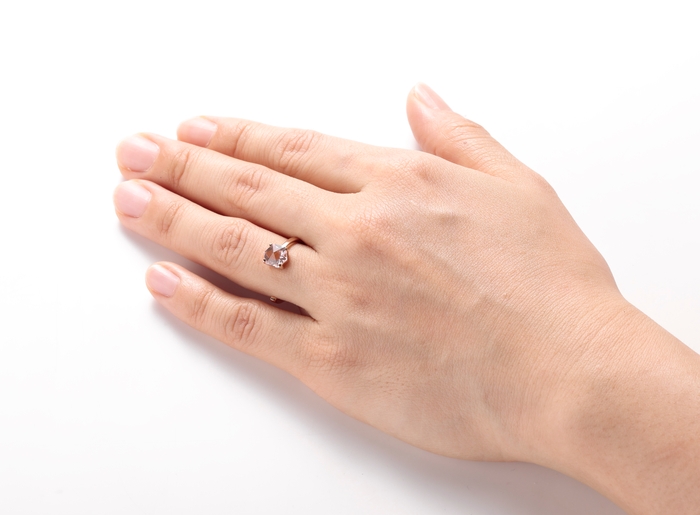 長い時を経て地球が育んだ本物の「天然石ピンククォーツ」と、肌に馴染みやすい「18Kピンクゴールド」を使用しています。