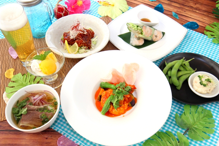 アジア各国の“美味しいとこどり”!天候に左右されない涼しい室内で、美味しいお料理と冷えたお酒をカジュアルに楽しむことができる夏季限定プランです。