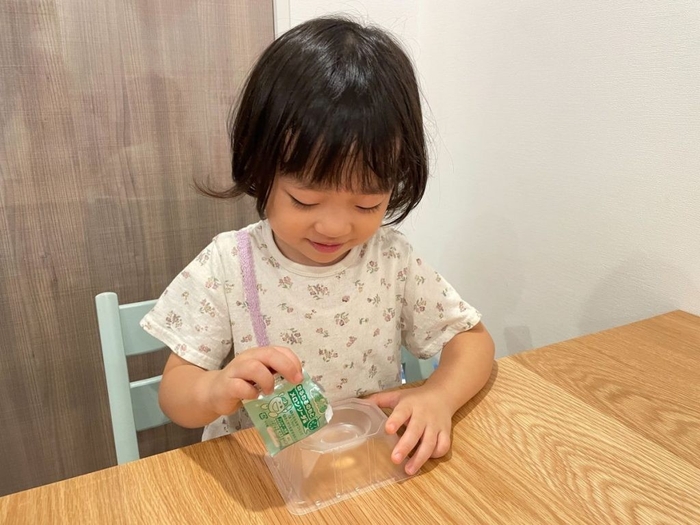 簡単に楽しく作ることができるので、まるで普段のおやつの時間のようで子どももウキウキに。粉薬を入れて食べてみると「おいしい〜」と大喜びでした。1箱に2種類の味が入っているのも嬉しいポイント。「次は何味にしようかな?」とお薬の時間を楽しみにしていました。