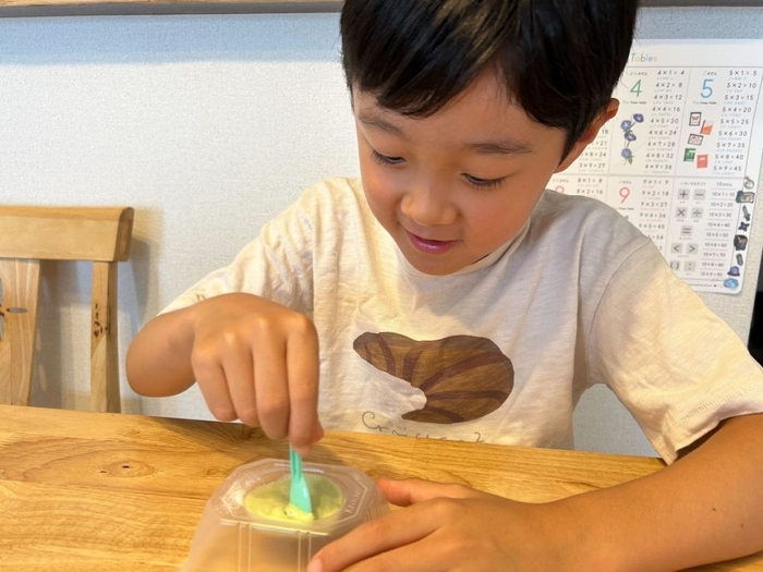 通年性アレルギーを発症しており、具合が悪いわけでもないのに、毎日薬を飲まなければならない息子。これまで薬の時間は親子ともに辛いものでした。しかし、「おくすりパクッとねるねる」の箱を見た瞬間、目をキラキラさせながら「やりたい! 早く作りたい! 」と興味津々に。