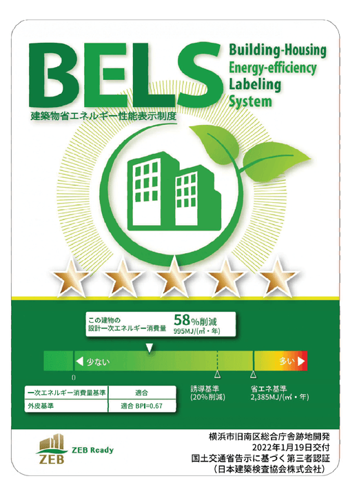 「VIERRA蒔田」は、環境への取り組みとして、一般的な建物に比べ基準一次エネルギー消費量を50%以上削減を達成し、ZEB Ready認証を取得しており、弊社も消費エネルギー削減に取り組んでおります。