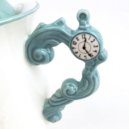 白ウサギのデザインがかわいくて、持ち手には懐中時計のモチーフも付いています♪マグカップお揃いのデザインで、デコラティブなセットです。