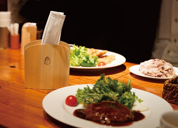 そんな中、お食事の時に外すマスクの置き場に、高橋さんご自身もお客として困った経験をされたそうで、「携帯用のマスクケースって出始めてはいるけども、まだあんまりカトラリー系では見かけてなくて。なぜ飲食店で広まってないんだろうって、思ってたんですよね。自分たちで作ろうかって、仲間とそんな話もしたくらいです。」と、マスクケースを家族や同僚にプレゼントしても、肝心な時に持っていなかったりしていたので、お客様用におしぼりのような感覚で使えるマスクケースって何だろう?と考えていたようです。そんな時、日頃よりお店のメニューなどのプリントでご利用いただいていたキンコーズで紙製のカトラリーとしてぴったりな“ほっこりマスクケース”の発売を知り、購入をすぐに決めたそうです。