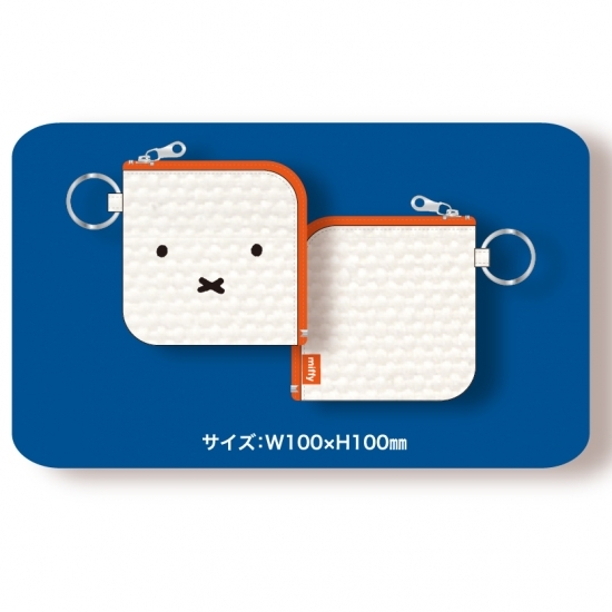 こちらはコインポーチです。100×100mmのコンパクトな正方形サイズで、持ち歩きにも便利。リング付きなので、バッグなどに取り付けることもできます。