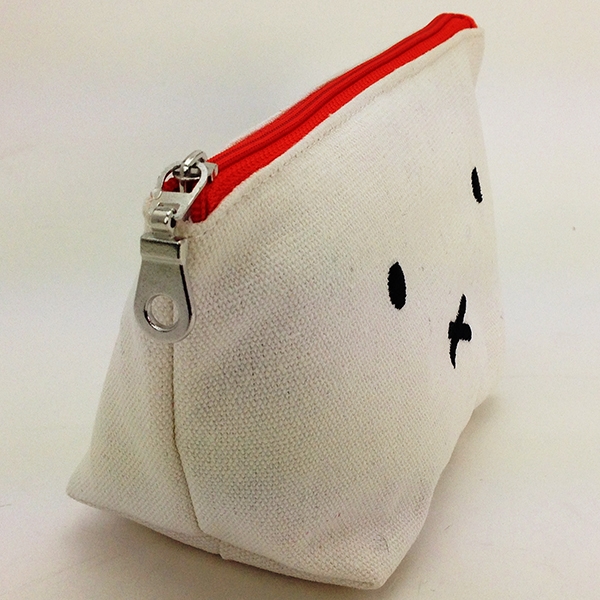 シンプルが魅力のポーチです。キャンバス地のナチュラルなカラーに、お顔がデザインされたキュートなポーチは、汎用性もあって大人気。サイズは200×100×80mm。ファスナー部分のオレンジも効いてますね。