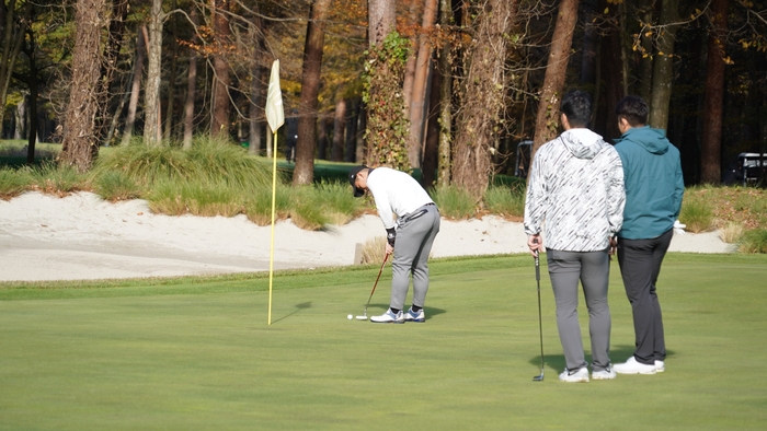 ジャイアンツ新旧選手会長の菅野・大城ペア、2018年ドラフトでホークス元同期の泉・野村ペア、共に20歳からゴルフを始めた国吉・長谷川ペアの3チームがオルタネート方式で激突!