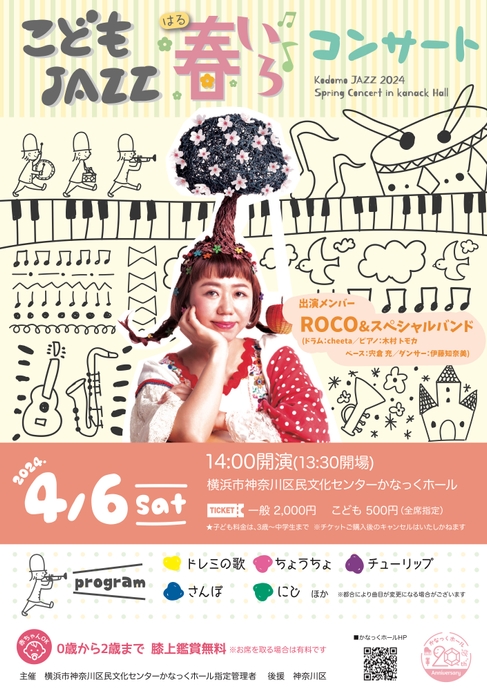 毎回大好評、ROCOさん出演の「こどもJAZZ」の開催が決定いたしました。今回は、春をテーマにワクワクするような楽曲をたくさんご用意しております。0歳赤ちゃんから入場可能!ぜひご家族でお楽しみください。