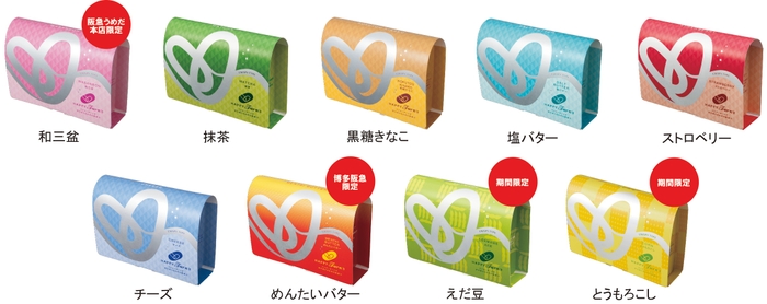 ※『ハッピーターンズ ハッピーポップ』には和三盆・抹茶・黒糖きなこ・塩バター・ストロベリー・チーズが入っています。