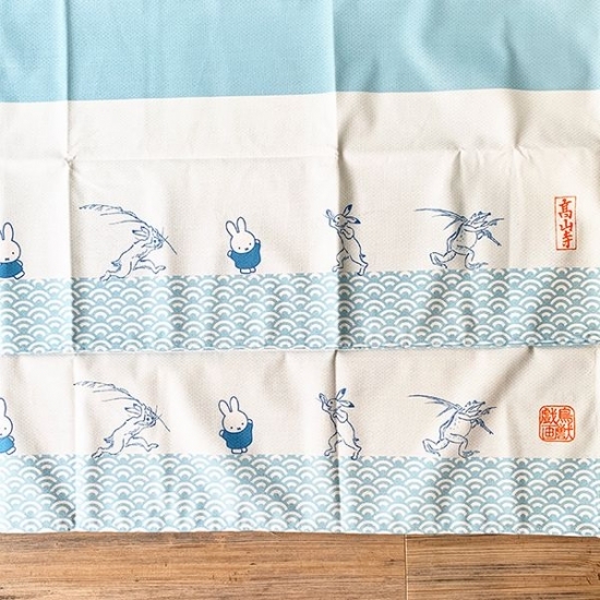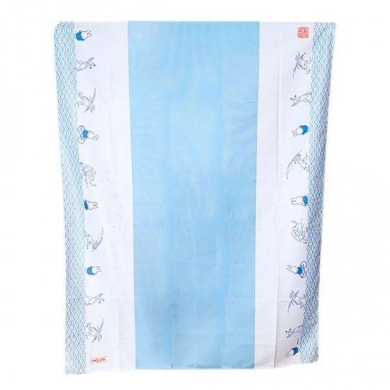 在庫希少すぎてご紹介できなかったのですが、こちらはテーブルクロス!残すところ5点以下になってしまいました。結構究極のお品物です。爽やかなライトブルー。青海波模様の上に、ミッフィーや鳥獣たちが楽しそうに踊っているようなデザイン♪