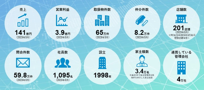 賃貸仲介店舗200店舗(ハウスコム直営199店舗・FC1店舗)