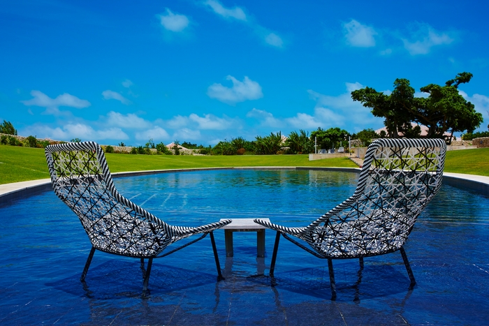 インフィニティエッジが施された「ラグーンプール」と、珊瑚礁の海に面した「ビーチハウスプール」、いずれも利用できるのは宿泊者のみ。デッキ
